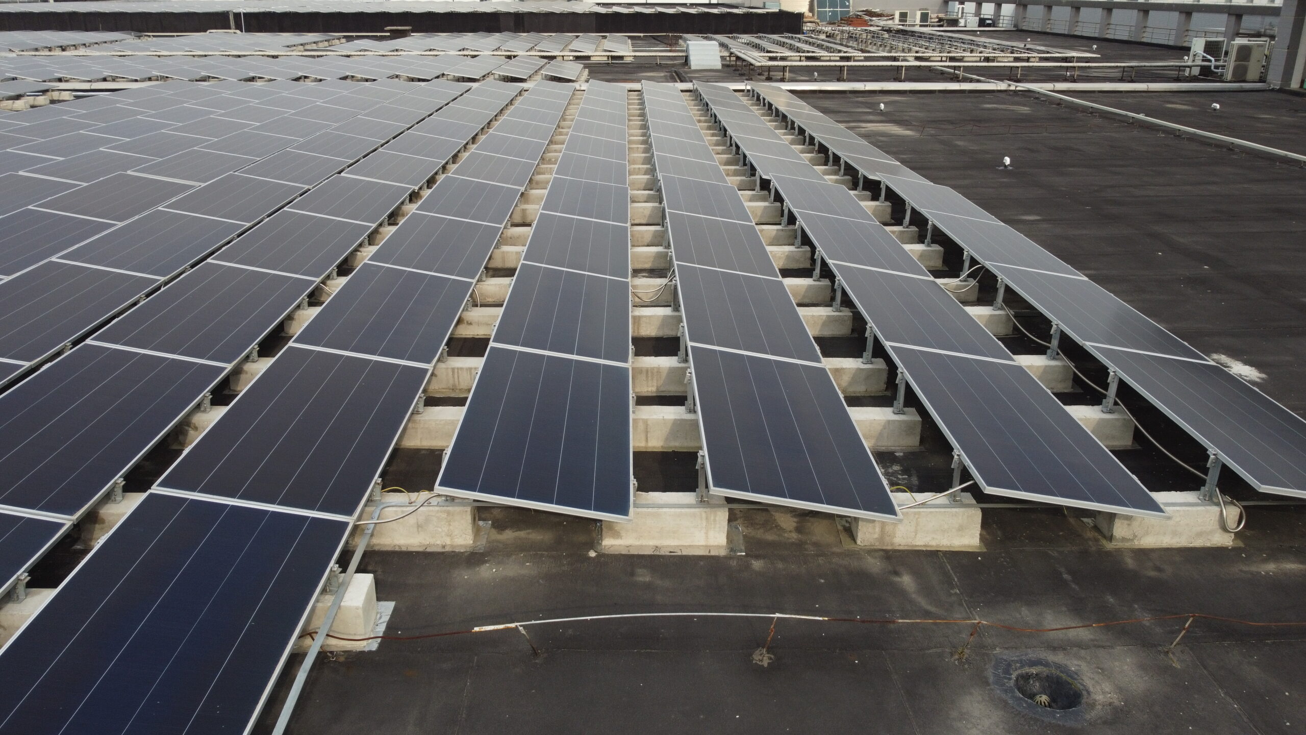 This 2.5MW rooftop solar project is in Suzhou, Jiangsu Province, combines metal roof solar mounting systems with concrete flat roof fixed steel structures, tailored for industrial factory rooftops. The system effectively enhances the utilization rate of roof space, continuously and stably outputs clean energy, and helps enterprises achieve their sustainable development goals.
